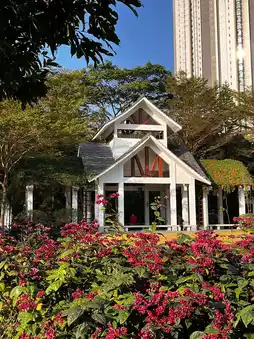 As you step into the park, you are greeted by lush greenery. The park is filled with a variety of plants, with trees and shrubs arranged in a picturesque manner, offering different sceneries throughout the year. In spring, the park is adorned with blooming flowers, in summer, it provides cool shade, in autumn, golden leaves dance in the wind, and in winter, it remains vibrant with greenery.