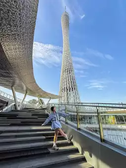 3️⃣Go down the atrium stairs to take a photo of the Guangzhou Tower