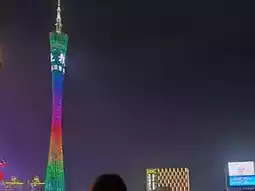 Canton Tower(广州塔)-A 600m-tall iconic landmark in Guangzhou, China, known for its sleek, curved design and colorful LED-lit nights.