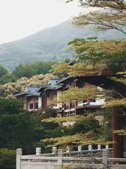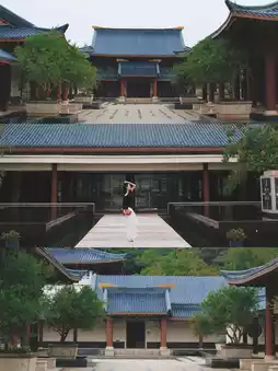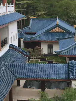 The rich Chinese-style architecture blends perfectly with the natural landscape