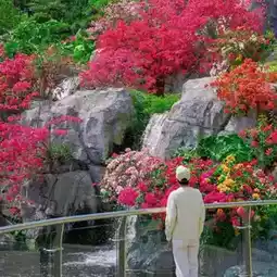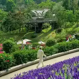 The C-position check-in spot in the park! As soon as you enter the park, you can see a sea of bougainvillea flowers all over the mountains. Five colors of flowers are grafted on one tree, pink cherry, lemon yellow, Bois rose... It's like falling into a spring oil painting.