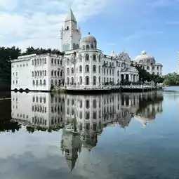 The pure white building is full of European style design⛪️. The building is reflected on the sparkling water, and the picture is extremely beautiful. If it is a sunny day, the sunshine will be pouring down, and it will be as beautiful as an oil painting 🖼️; on cloudy days, the small castle shrouded in clouds and mist will add a sense of mystery. You can enjoy the unique scenery at any time.
