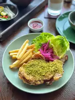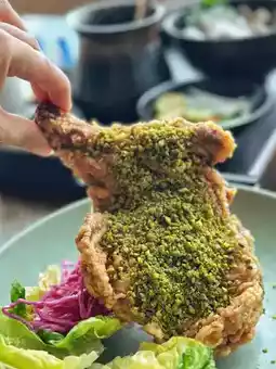 The pistachios are fragrant and crispy, covering the entire chicken leg