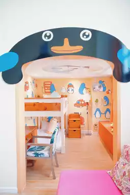 🔹 Stay in a penguin suite with a slide. The loft duplex space is spacious and comfortable, with a queen-size bed + bunk bed that can accommodate 4 adults.