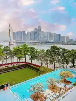 Ersha Island: Walk by the river for shots with Guangzhou Tower and spring flowers at Hongcheng Park.