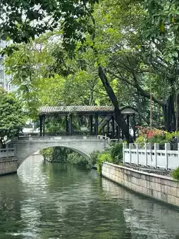 Rent a wooden boat to drift across the lake, watching Xiaocui Pavilion's reflection shatter into shimmering ripples, and gaze up at century-old banyan trees with cascading aerial roots like curtains when passing under Rainbow Bridge.