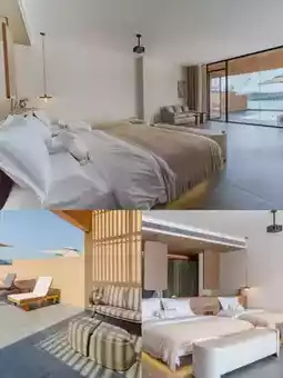Infinity pool by a century-old temple + floor-to-ceiling lake views