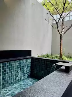Nestled amidst the urban mountains, Sui Ji • Jian Shan is not a traditional hotel but rather a curated space for lifestyle aesthetics. Its infinity pool faces lush mountain views, resembling a natural water surface that grows organically without embellishment, becoming a scenery in itself.