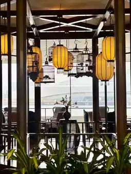 The poolside bar offers some incredibly creative drinks! The "Thirteen Hongs Milk Tea" is served in an enamel cup 🍶, paired with "chicken biscuit-shaped macarons." Sit in a rattan chair and watch the boats pass by, and you'll feel like you've traveled back to 1980s Guangzhou ⛵.