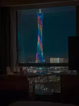The hotel occupies the core area of Zhujiang New Town CBD, forming a golden triangle with iconic landmarks such as Canton Tower and Tianhe City. It takes only a 3-minute walk from the hotel to Liede Station on Metro Line 5, and within 15 minutes you can reach popular check-in spots like Canton Tower and the Grand Theatre. Business travel is even more convenient, with Guangzhou East Railway Station just a 10-minute drive away, seamlessly connecting to the high-speed rail network. The most stunning feature is its high-altitude view; the room I stayed in offered a panoramic view of the winding Pearl River and the skyscrapers clustered in the CBD. As night falls and the city lights come on, the neon outside the window sparkles like a dazzling galaxy, making every snapshot a viral hit on social media.