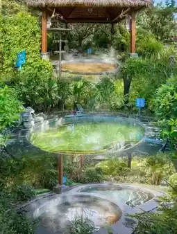 The hot spring area has multiple themed pools with moderate water temperature, especially suitable for soaking with kids. The children’s pool has slides and water toys, kids don’t want to leave!