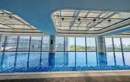 At dawn, the 205㎡ infinity heated pool becomes a crystalline realm. Sunlight streaming through skylights dances on the pool floor, and at its edge, the Jiaomen River wetland landscape unfolds, creating the illusion of swimming between heaven and earth.