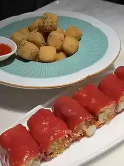 - Red shrimp noodle rolls, the noodle roll dough is a bit chewy, but when you bite into it, you will find bouncy shrimp.