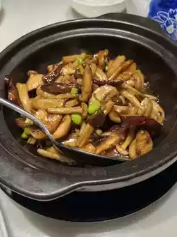 - Stir-fried mushrooms with soy sauce, salty and oily.