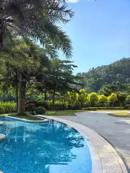 Want to find a **big, beautiful, first-class, safe and secure hotel swimming pool in Guangzhou to relax and vacation? The swimming pool of Nansha Garden Hotel is definitely a top choice! It is especially suitable for summer to invite girlfriends and bring family to play in the water and take pictures, and enjoy the fairy time surrounded by greenery! 💯 Sisters who are afraid of cold are advised to wait until the weather is warmer before taking a bath, and the experience will be maximized directly! Go for it! 🏊♀️💨