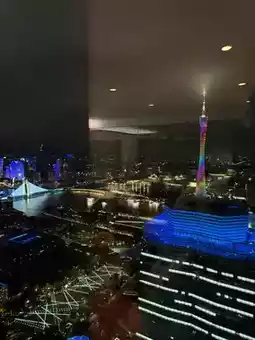 The facilities are top-notch✨, featuring Dyson hair dryers, Toto smart toilets, and everything from soaking pools to dry and wet steam rooms. There's even a family changing room, so thoughtful it could bring tears to your eyes! The highlight is the view—absolutely stunning. Floor-to-ceiling windows offer a direct view of the Canton Tower, with the Liede Bridge stretching across your sightline. The city lights spill into the pool, creating a mesmerizing live scene 🍃.