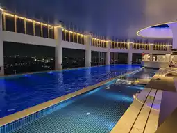 This pool boasts the hotel's prime viewing spot🌊 Swim while overlooking the shimmering waves of the Pearl River, especially at sunset when the orange-red glow spreads across the water, and even the breeze carries a romantic vibe. The pool seamlessly merges with the skyline, and swimming to the edge feels like blending into the river view. Snap a photo and everyone will ask: "Are you vacationing abroad?"