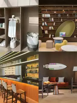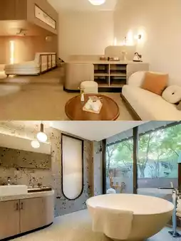 The hotel itself is a Lingnan aesthetic palace! Wood carvings and lion dance elements blend into Morandi-toned spaces, and the light and shadow flowing between corridor pillars tell the stories of Xiguan. The family rooms are full of surprises—the Ultraman theme instantly ignites kids' hero dreams! A giant Ultraman doll guards the bedside, with ripple-patterned bedding and themed tents, instantly transforming the room into a passionate battle base.