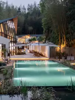 ● **Bamboo Forest Shared Spring**: Semi-outdoor pools hidden in bamboo groves🎋. Book private slots to unwind alone, listening to rustling leaves under the moon—perfect for introverts.