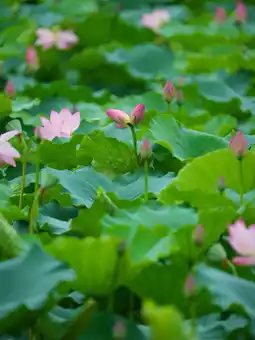 A romantic sight exclusive to June-August! A pond full of graceful lotus flowers.