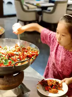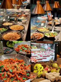 2️⃣ Enjoy a buffet dinner at the Steigenberger Hotel in the evening🍲. Just call for a golf cart at The Hortland Joyous Snow front desk, and you’ll arrive at the Steigenberger Hotel in minutes. The dining environment is upscale and comfortable, with a wide variety of options, including my daughter’s favorite crayfish🦞, a mix of Chinese and Western dishes, sashimi, sushi🍣, and post-meal ice cream and desserts…