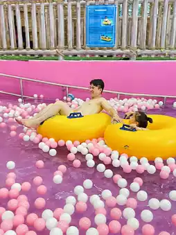 1️⃣ The lobby is super cozy, and the room balconies offer a 180-degree panoramic view. After checking in in the afternoon, you can choose your favorite park. This time, we went to R&F Water World—an all-indoor water park that’s incredibly fun, free from sun exposure, and features multiple attractions like the giant slide, high-altitude water slides, lazy river, and more. At scheduled times, there are even performances in the wave pool!