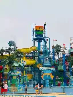Get that beach feel in the massive artificial wave pool. Jump, surf, or float while the DJ drops beats. Foam parties often add to the wild vibe! πΆπ