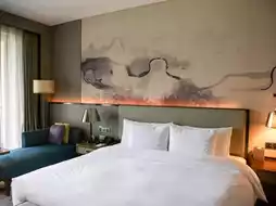 Sunac Mauve Hill Hotel Guangzhou is a luxurious 5-star hotel featuring a spacious lobby, a children's playground, an indoor swimming pool, a fitness center, steam rooms, and saunas. Although the children's playroom is currently under renovation, guests can use the facilities at the neighboring hotel, with golf carts available for transportation.