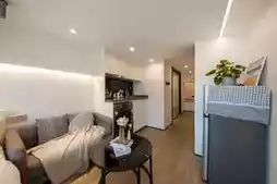 - Thoughtful space design with a bed, sofa, and small desk perfectly arranged. It's spacious enough for two people—ideal for couples, friends, or small families.
