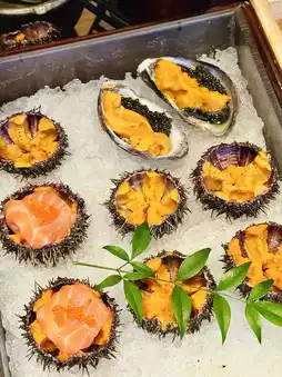 Smooth and sweet New Zealand scampi, freshly opened sea urchin,