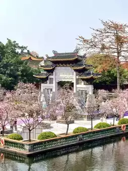 Baomo Garden in Guangzhou is an ancient Chinese garden in the Lingnan style, featuring pavilions, stone bridges, a large koi pond, and beautiful brick carvings. The garden offers a peaceful atmosphere, with seasonal flowers like cherry blossoms and lotuses. The garden is large and shady, offering many beautiful photo opportunities. There's also a Chinese costume rental shop for stunning photos.