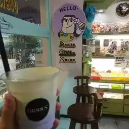 1. Buzz Lightyear Coconut Milk – Pandan Coconut Milk, with a taro latte feel, served with a cookie on the side.