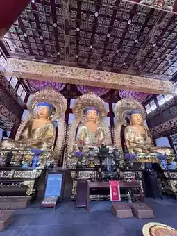 • Large golden Buddha statue – Inside the main hall are three majestic statues.
