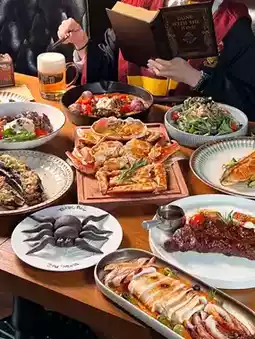 • Themed desserts & drinks (butterbeer-inspired 🍺, magic cocktails ✨)