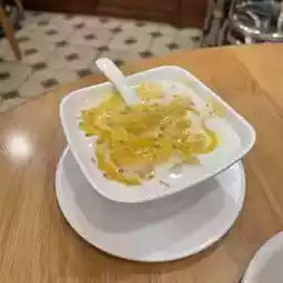 The double-skinned milk made from buffalo milk is smooth and rich in texture. It is different from what we eat in Hong Kong. It is double-skinned milk that is thicker and more sticky, a bit like eating steamed eggs. The milk taste is light