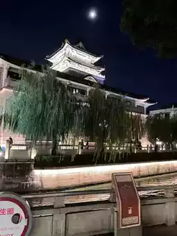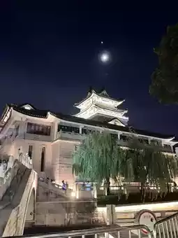 At night, the lights reflect off the water, creating a moon-like shape. 🌙