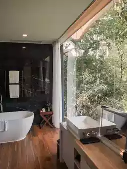 In addition, you can swim in the naked-heart pool right next to the tent and experience the charm of the infinity pool in the forest. Also, don’t miss the breakfast at "Zhenyi Xuan"✅. The hearty Chinese breakfast is really delicious—I accidentally finished everything on my plate. The restaurant’s decor uses floor-to-ceiling glass design, which not only provides excellent lighting but also offers views of the garden outside. Absolutely loved it!