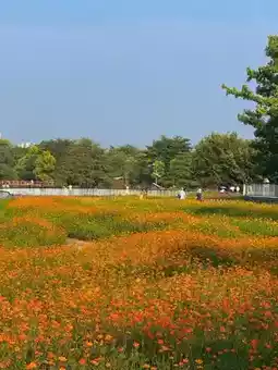 1️⃣ Not only is there this sea of sulfur cosmos, yesterday I also saw staff transporting large batches of flowers to various parts of the park