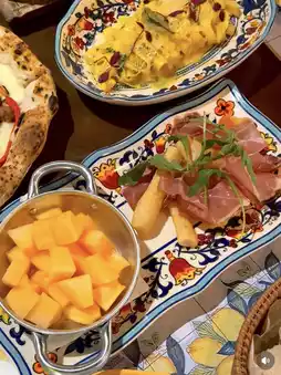 You can see the pizzas being baked in a traditional stone oven right in the restaurant — the smell alone will pull you in!🔥