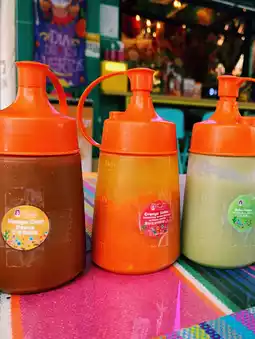 Drink menu update: Whether you’re all about non-alcoholic deals (hello, soda & water!) or you wanna get your drink on, there’s a sweet selection for both. And trust me, the colorful bottles on the table pop against the cool market stall backdrop—totally Instagrammable! 📸✨