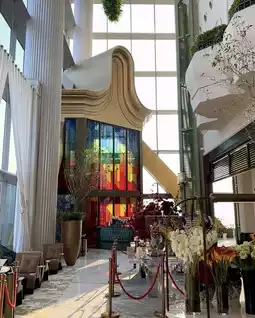 The 57th-floor cloud lobby is definitely the top photo spot, with 270° panoramic floor-to-ceiling windows capturing the bustling Panyu district in full view. The swing king bed room I stayed in offers great value, and the bird’s nest swing chair in the room is super photogenic. Snuggling in there to binge-watch shows at night is just amazing~ The modern light luxury design is full of details, with a red and black main color scheme paired with greenery that’s very stylish. Every snap looks like an Instagram-worthy shot.