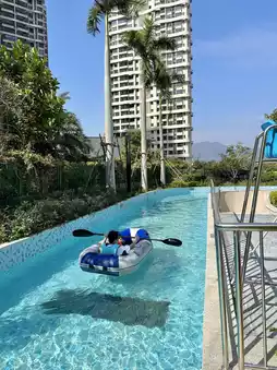 • Sky-High Instagram Spot: The 50-meter-high transparent infinity pool is a must-visit! The 54㎡ transparent pool bottom feels like floating in the clouds. Swim at sunset while watching the evening glow—every snap is an Instagram-worthy masterpiece. The transparent observation ladder overlooks the lush Nankun Mountain, guaranteeing perfect photos.