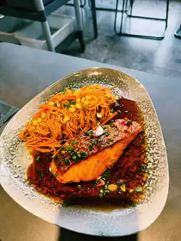 🐟 Teriyaki salmon with pasta — Trust me, this combo slaps! The sweet-savory sauce and silky salmon with pasta is a chef’s kiss fusion I never saw coming.