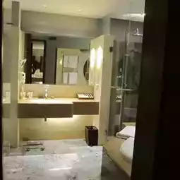 His bathroom 🚻 space is very large 🤔 cleaning 🧹 is very clean 😳
