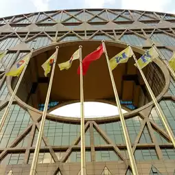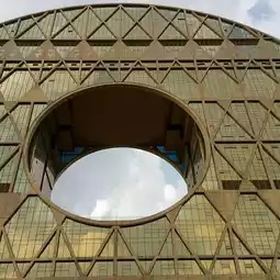 Guangzhou Yuan. This is one famous building in the Guangzhou city shaped like Chinese coin, so it is called by citizens in this way, yuan. I remember several years ago it was even shown on a TV. No doubt, idea is pretty original and I need to say even more, the idea was realised very good. So, now anyone can come and take a look. Actually, Yuan could be spotted from different places in the city, elevated points above the channels.