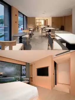This newly opened 2024 property features a sleek 7-story design. Every room has floor-to-ceiling windows offering excellent natural light and views - the sunlight streaming in creates such warmth. The wood-toned decor paired with warm pendant lights makes you feel cozy and relaxed the moment you enter, with quality evident in every detail.
