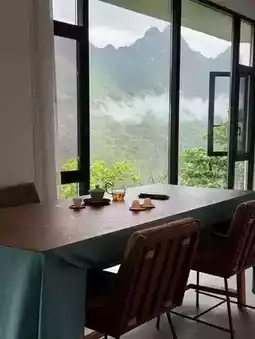 Just a 15-minute drive from Huangguoshu Waterfall, my family and I checked into the cliffside gallery homestay "Yue Shan" nestled in the mountain stream.