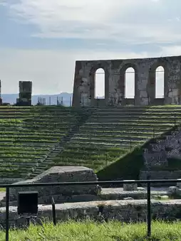 This Roman theater, built in the 1st century AD, is the second largest of its kind and still stands strong. It has a seating capacity of 6,000 people 👫👬👭.