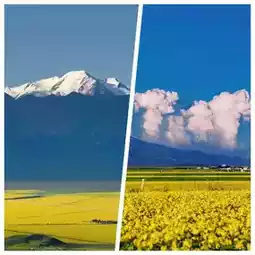 Ticket: Free (viewing platform 30 RMB), hundreds of miles of rapeseed flowers with snow-capped mountains in the background, great for aerial photography.