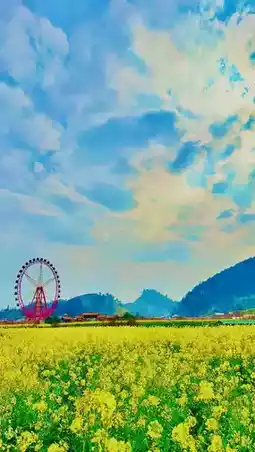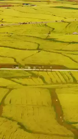 The March sunshine sprinkles broken gold on 100,000 acres of rapeseed flowers, and the waves of flowers rise and fall with the mountains, like a gilded painting spread across the earth. The hiking trail winds through the garden, bees and butterflies whisper among the flowers, and the air is filled with the sweet scent of honey and pollen. At dusk, the flower fields and the skyline blend into an amber ocean, and the setting sun turns the last rays of light into intoxicating nectar.